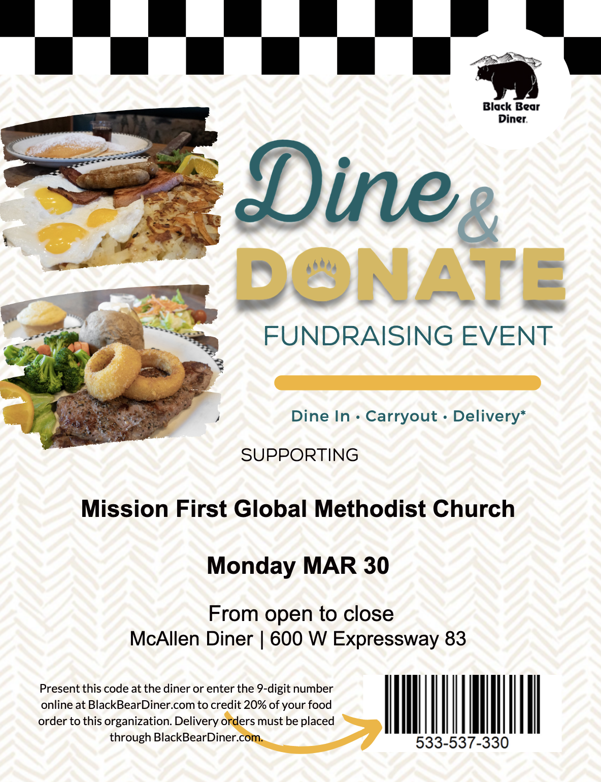 Dine at Blackbear Diner Monday March 30th and Blackbear Diner will credit 20% of your order to our fundraiser. Download the code below.